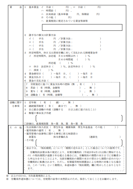 労働条件通知書には記載しなければならない事項が法律で定められております。