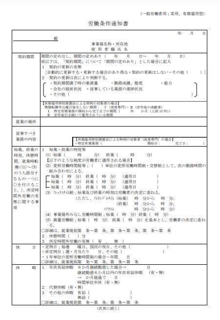 上述のとおり、有期契約の労働者においても労働条件通知書の対象者となります。