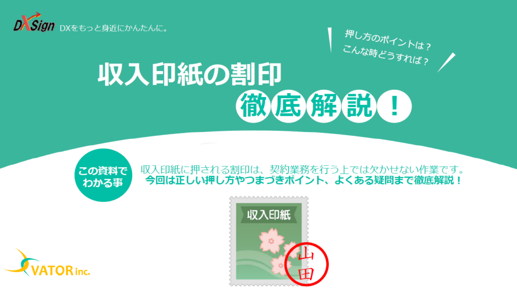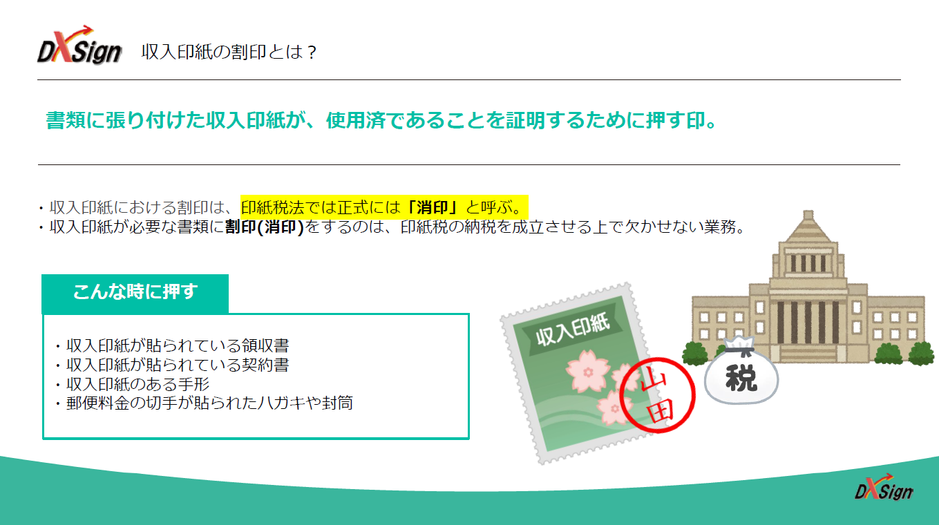 収入印紙の割印について、正しい押し方やつまづきポイントを分かりやすくご紹介しております。